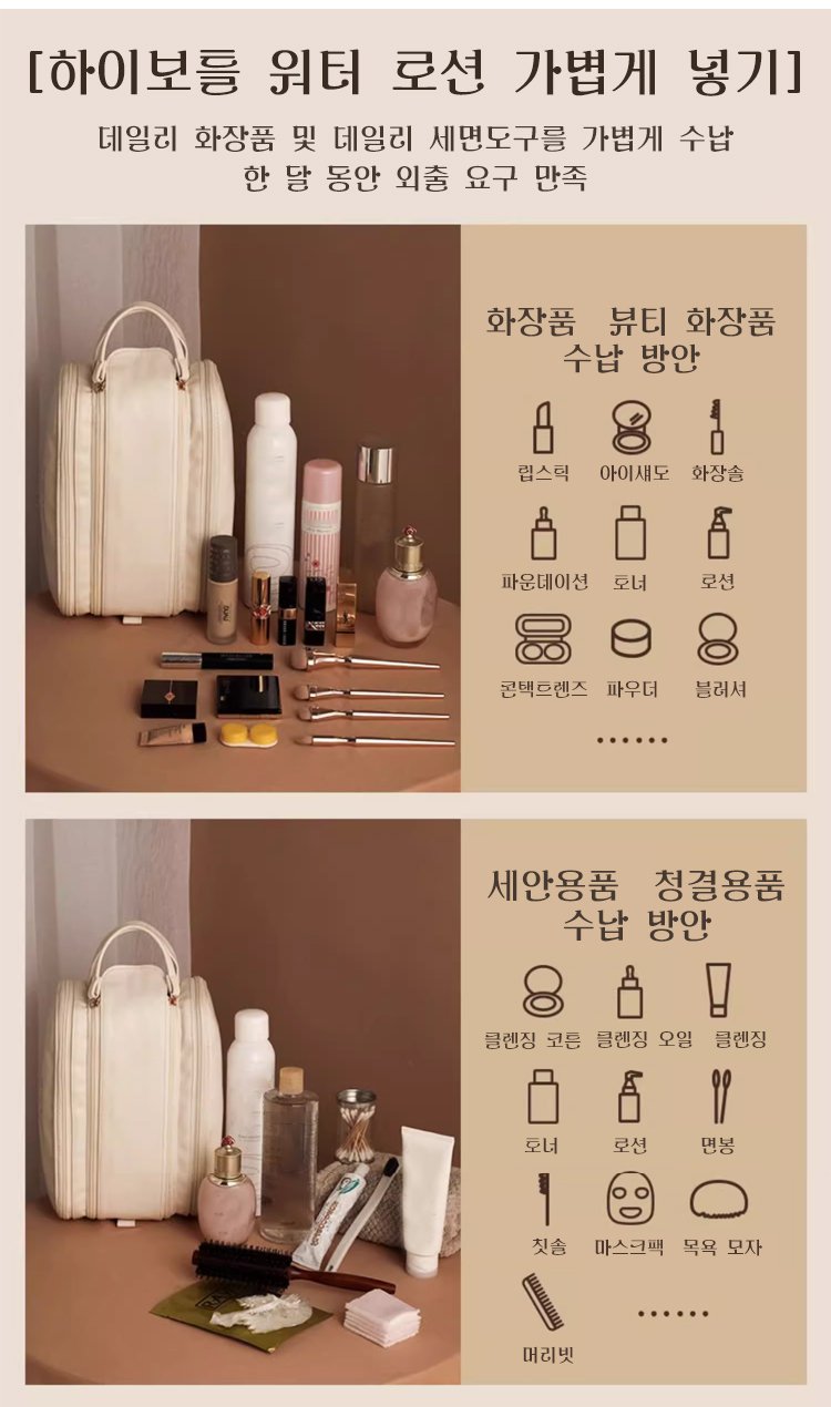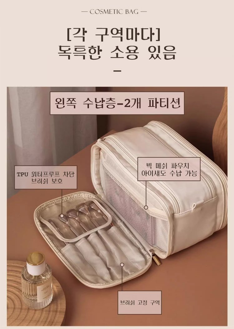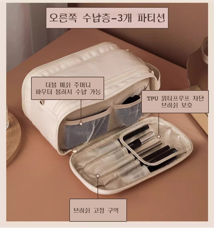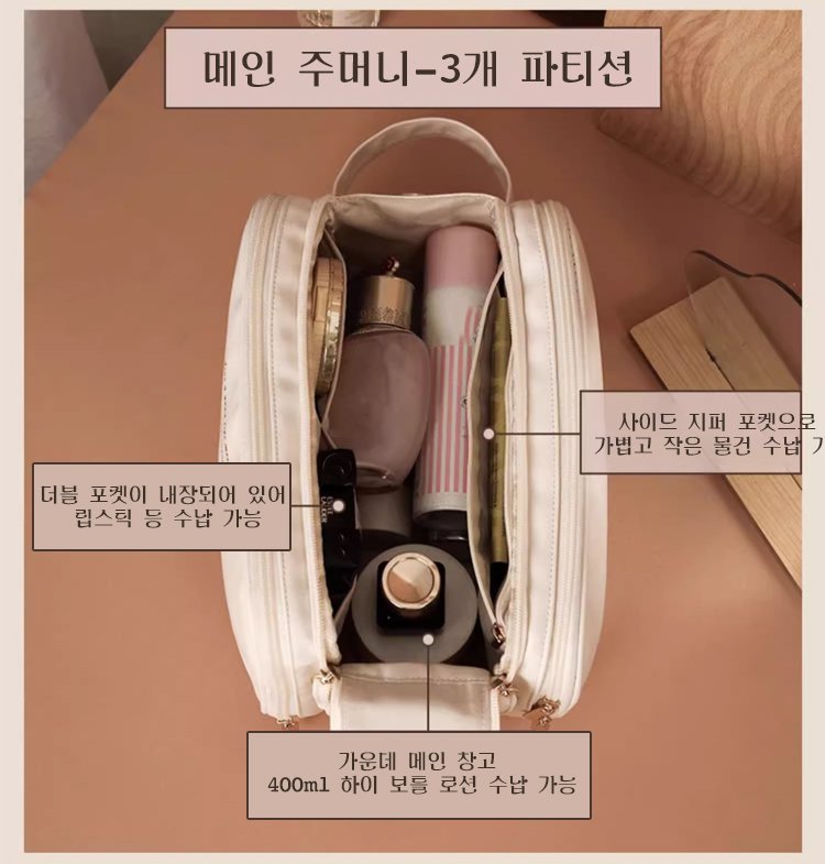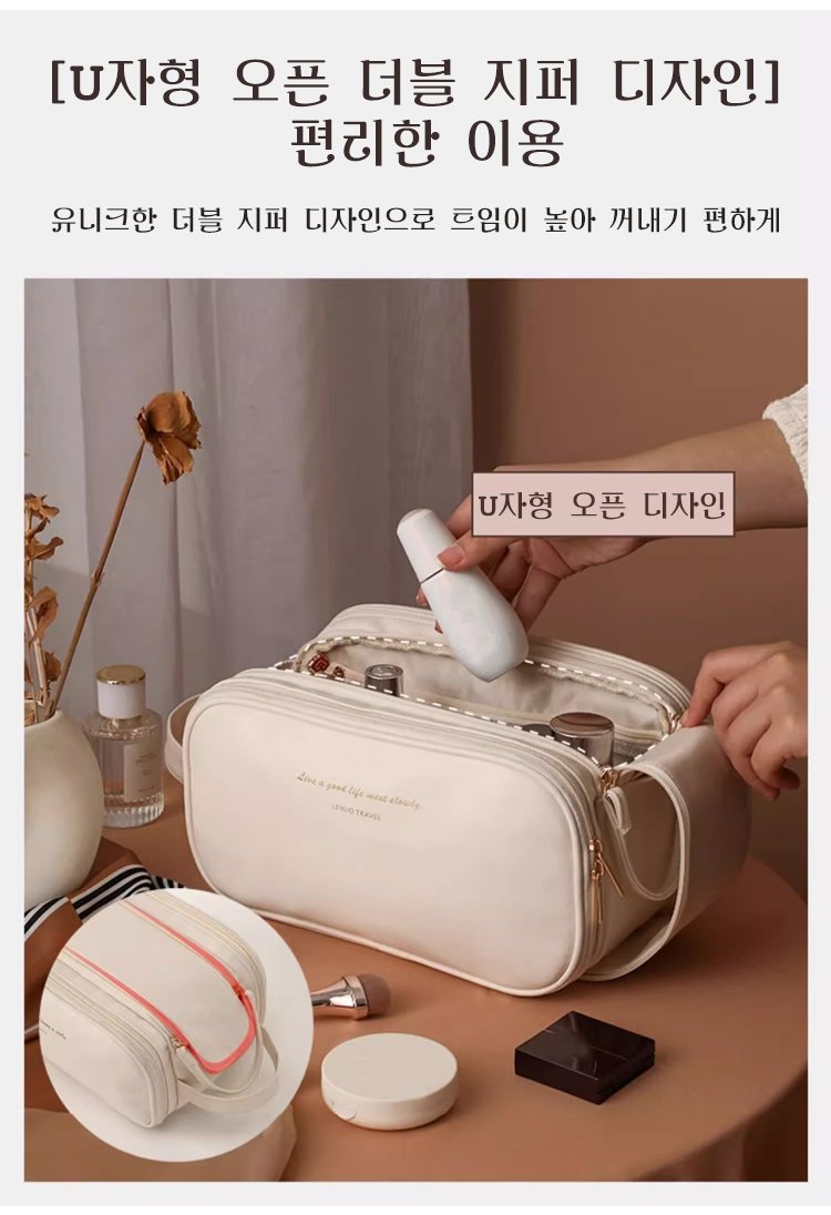 삼단 더블 지퍼 비주얼 대용량 파우치